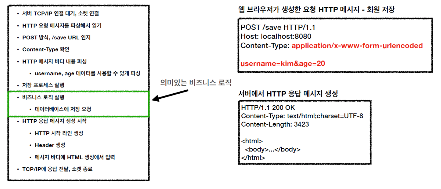 자바 웹 개발의 핵심, 서블릿이다. 만약 서블릿이 없다면 우리는 HTTP 요청 메세지를 직접 파싱하고, 응답 메세지를 한 땀 한 땀 만들어야 했을 거다.