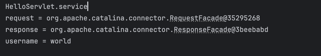- 우리가 만든 HelloServlet.service() 메서드를 실행하면서 위 두 객체를 파라미터로 넘겨준다.