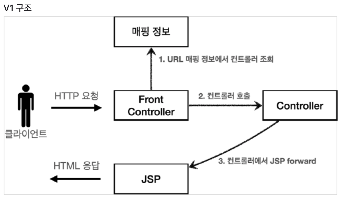 가장 먼저 할 일은 구조를 변경하는 것이다. 클라이언트가 개별 컨트롤러를 직접 부르는 게 아니라, 프론트 컨트롤러가 URL 매핑 정보를 보고 컨트롤러를 호출하도록 바꿀 것이다.